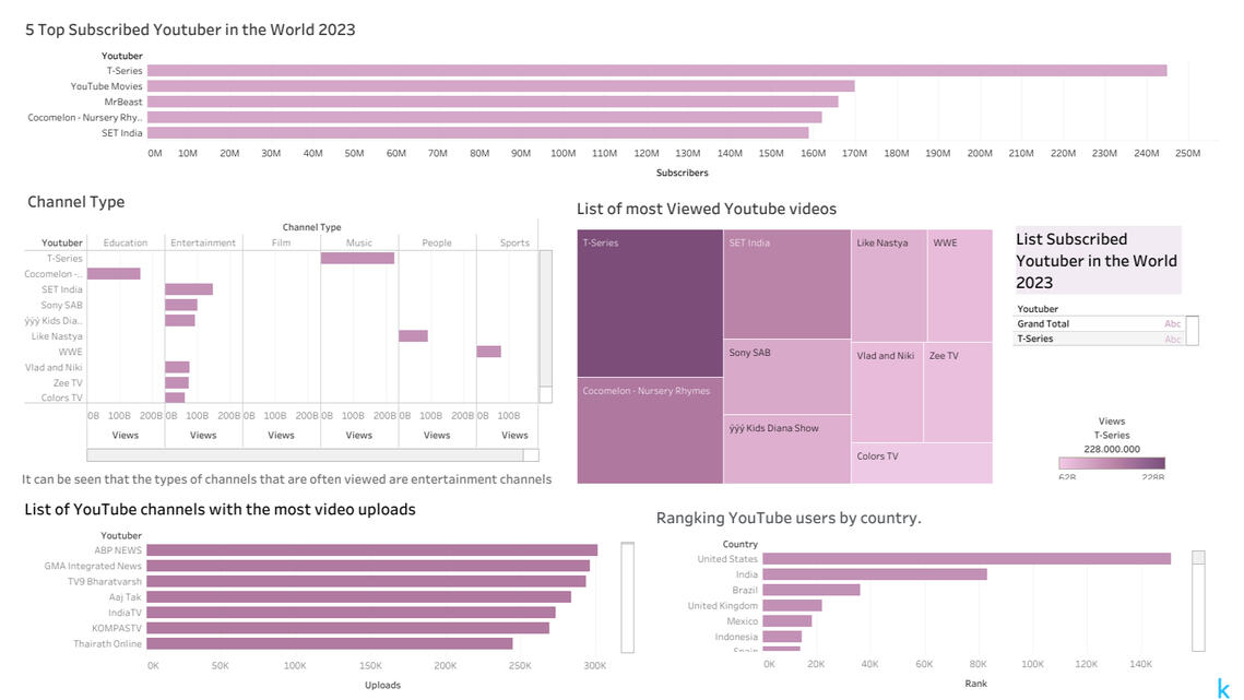 Chanel of T-Series is the most views and subscribers on YouTube in 2023.